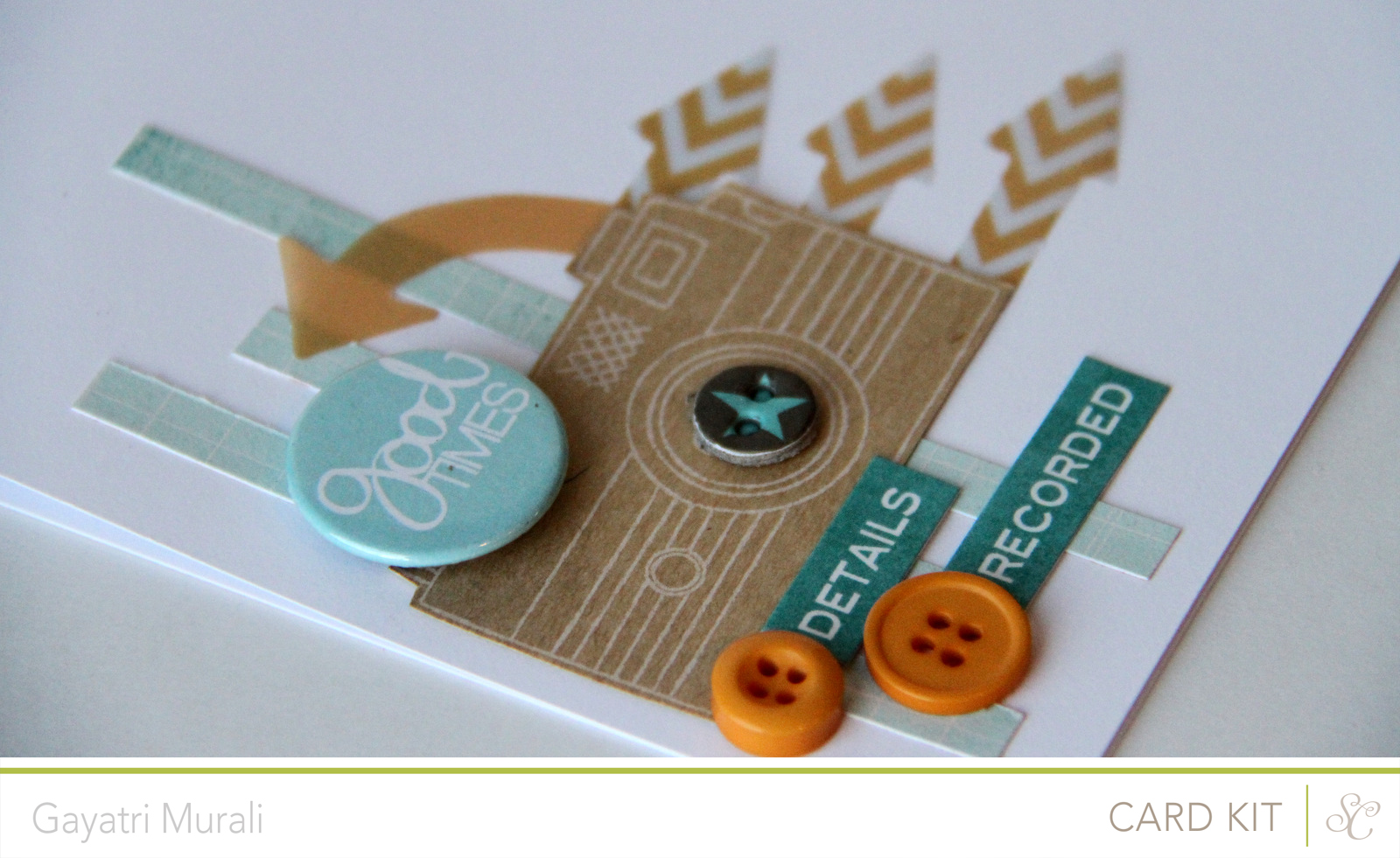 I have used vellum speech bubbles, chipboard heart and enamel dots which came with Studio Calico's kit. The arrow die cut is from Papertrey Ink. Love the soft vellum, with trendy arrows, speech bubbles, the combination of red and blue with grey. I should say I am a bit proud how this card turned out:) Hope you like it.
