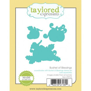 Today is day #3 of Taylored Expressions new release sneak peek. Hope you have enjoyed my Day #1 and Day#2 projects. I have more to share with you today. Again I am showcasing two new products. Two new stamp sets, first set fall themed called Bushel of Blessings and coordinating dies. The second birthday themed called Simply Stamped Cupcakes and coordinating dies.